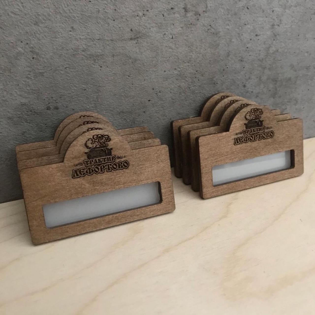 Бейдж з дерева на магніті з логотипом 75х65мм 3мм
