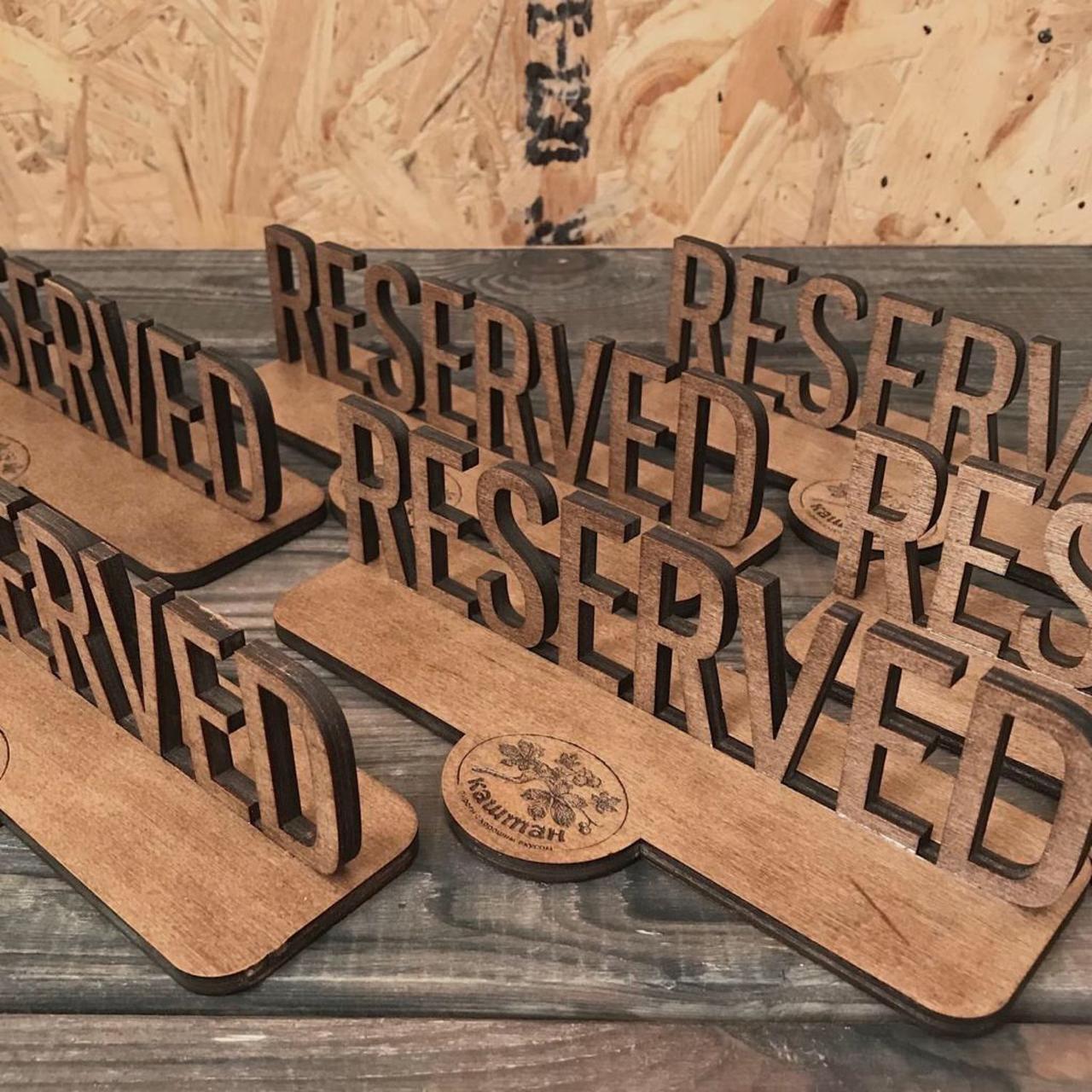 Табличка резерву на стіл - обов'язковий аксесуар для закладу, адже як ще красиво і ввічливо позначити, що столик зарезервовано? В нас ви можете замовити різноманітні таблички з унікальними дизайнами. Також наносимо ваш логотип чи надпис. Оригінальні моделі додадуть родзинки вашому закладу.